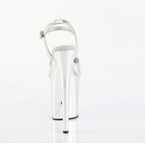 8" (200mm) Heel, 4" (100mm) Platform Ankle Strap Sandal w/ Chrome Plated Platform Bottom
