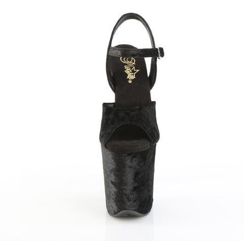 8" (200mm) Heel, 4" (100mm) Platform Ankle Strap Sandal Featuring Shimmering Fabric Upper and Fully Wrapped Matching Platform Bottom